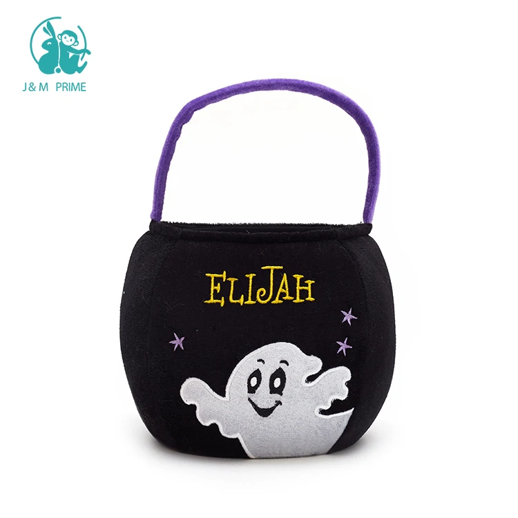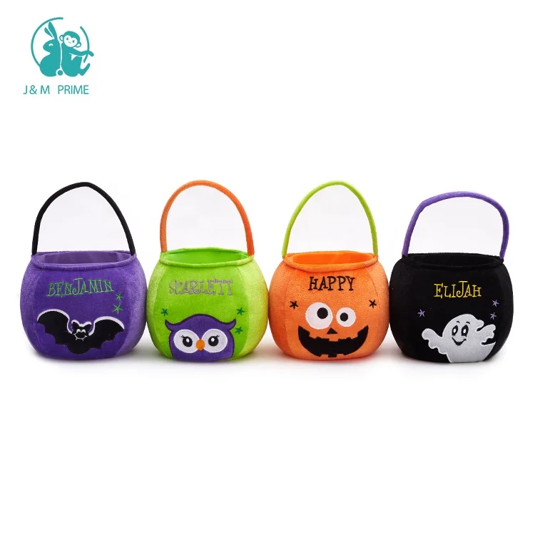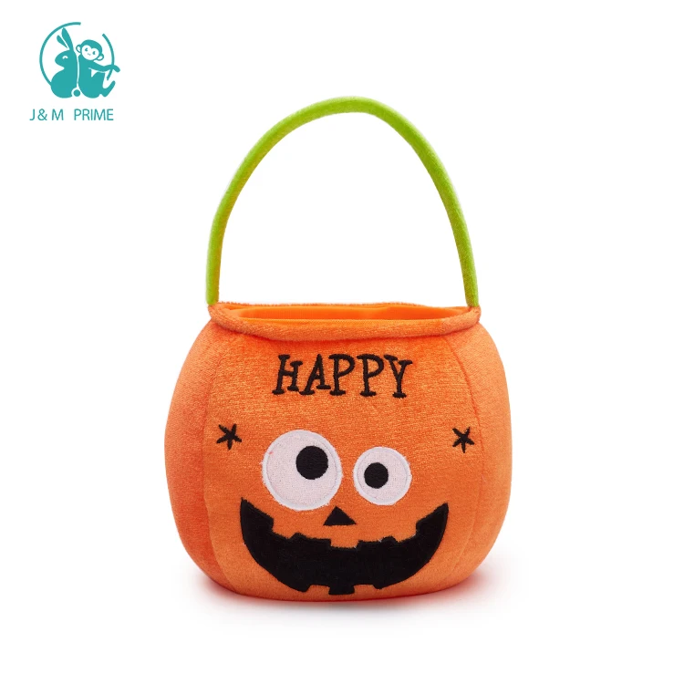 Halloween Party Tote Gift Bag Round Decorative Supplies for Kids Pumpkin Baskets Bag in Plush Material with PP Cotton Filling